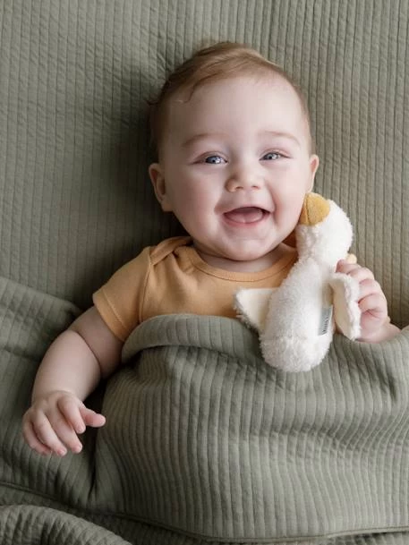 La célèbre petite oie Little Goose s’est transformée en hochet pour le plus grand bonheur de bébé. Cette peluche sonore est le premier jouet idéal pour que votre petit bout joue et s’amuse. Elle est conçue pour que les petits doigts puissent la saisir et elle stimule les sens lorsque bébé la serre et entend ces sons amusants. Rires de bébé garantis !