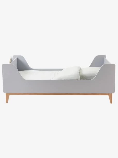 Lit enfant avec rangements livres ligne FJORD en panneaux de fibres de bois, pieds et traverses en frêne massif, peinture à base aqueuse.