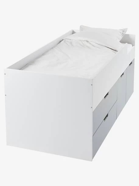 Lit Enfant Mi-hauteur XL Avec Rangements LIGNE PASSE-PASSE Blanc – Gris – Vertbaudet