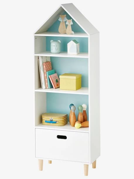 Meuble de rangement « maison » en panneaux de particules de bois. Pieds en pin.