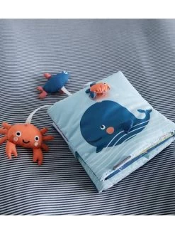 Plus qu’une peluche et plus qu’une veilleuse, une veilleuse projecteur dynamique ! Un véritable projecteur d’ambiance aux effets sous-marins qui apaise l’enfant en captant son attention grâce aux projections de vagues et de poissons en mouvement…