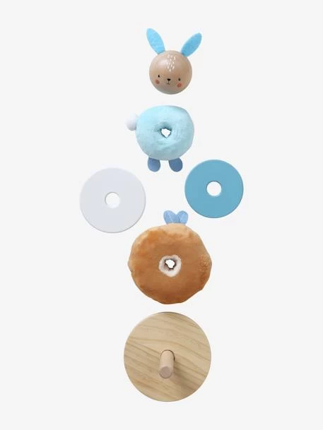 - 4 niveaux à empiler dont 2 anneaux en velours avec détails en relief et 2 anneaux en bois