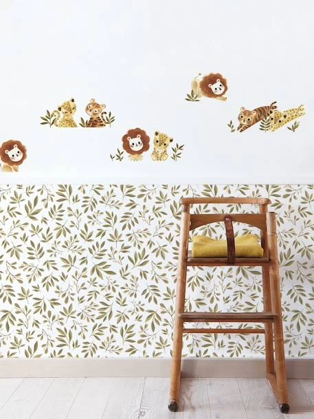 Retrouvez l’univers Felidae de Lilipinso avec ces stickers muraux aux couleurs chaudes et motifs vintages composés de lions, de tigres et de léopards au milieu du feuillage de la jungle.