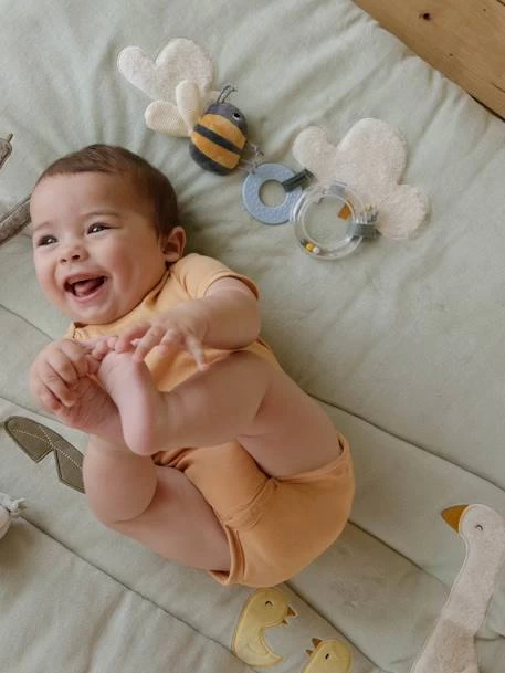 Sur ce tapis de parc tout doux et matelassé, les bébés se retrouvent à la campagne. Avec Little Goose et ses petits amis, les bébés n’auront pas le temps de s’ennuyer ! Il y a beaucoup à découvrir avec les différents matériaux et activités, comme un petit miroir, du papier froissé, un hochet et des petits jouets dissimulés. Parfait pour le parc ou même à emporter en voyage.